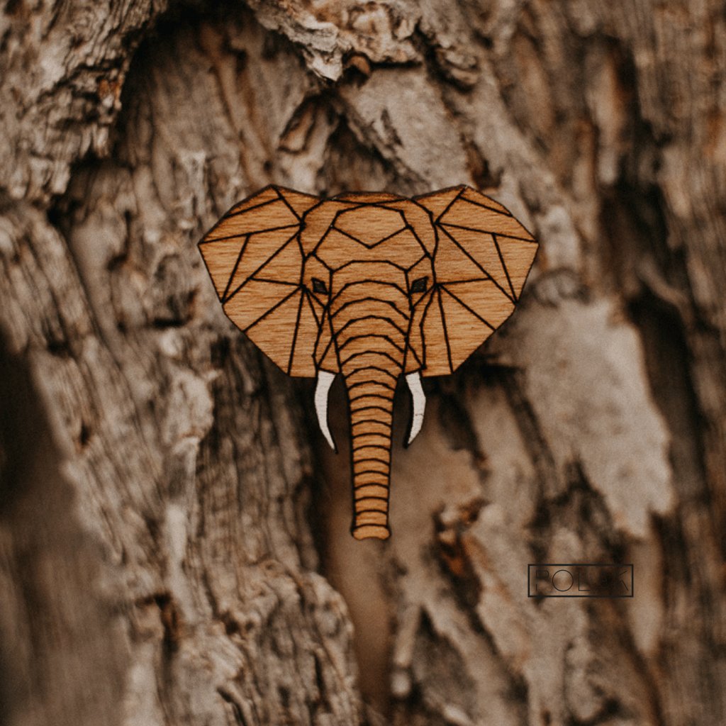 Dřevěná brož Dear Elephant - vládce savany ruční výroba | originální dárek pro milovníky zvířat