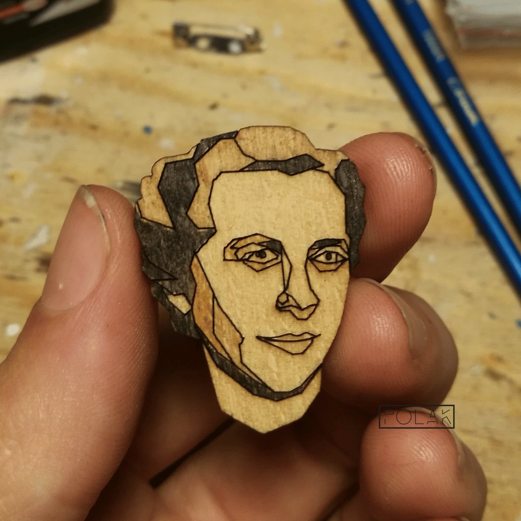 Dřevěná brož Milada - lidskost v době temna ruční výroba | dřevěná pocta obětem totality