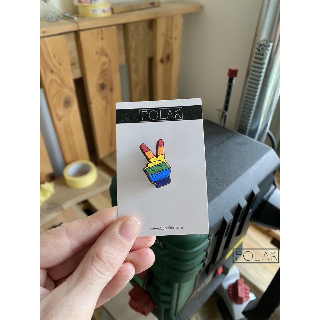 Zvedněte ruku pro mír a lásku! Tato dřevěná brož s ikonickým gestem ve všech barvách duhy je víc než jen doplněk. Je to prohlášení, symbol naděje a připomínka, že láska a porozumění dokážou změnit svět.