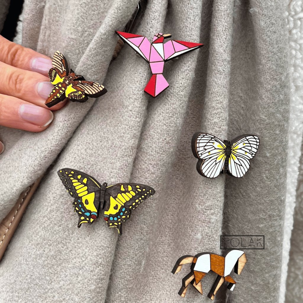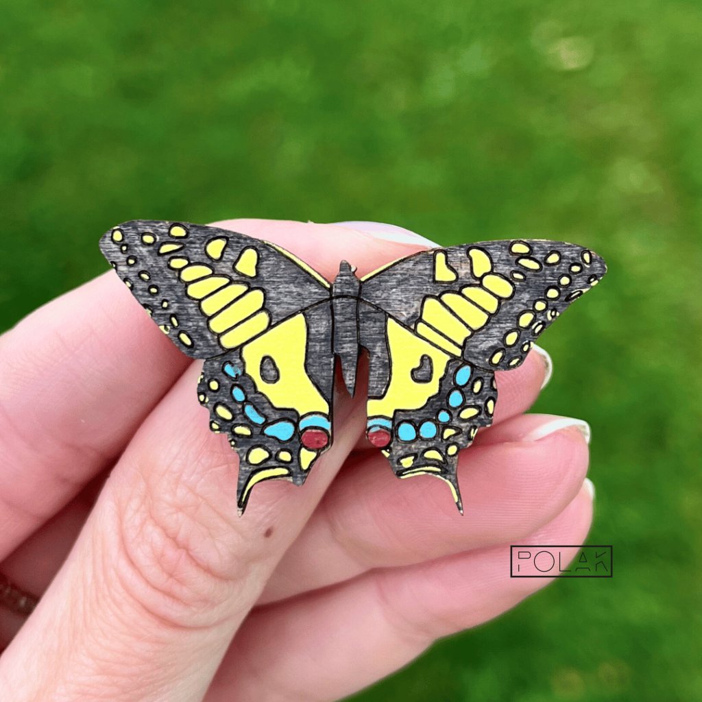 Z rozkvetlých luk a sluncem zalitých polí přilétá tento majestátní motýl. S křídly zdobenými zářivou žlutí a elegantními černými vzory je otakárek fenyklový symbolem krásy a letní pohody. Tato dřevěná brož je poctou jeho půvabu a připomínkou, jak bohatý a rozmanitý je náš svět.