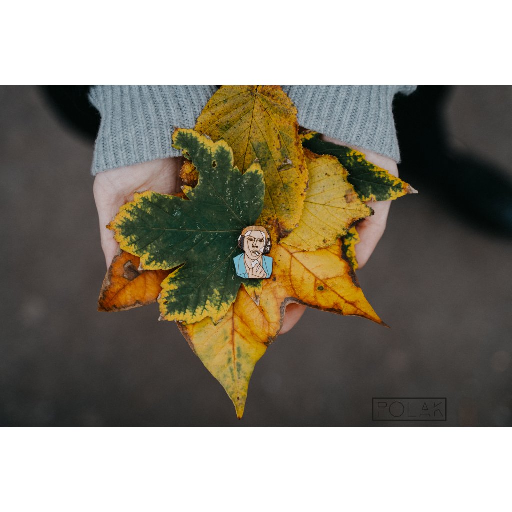 Tento "génius" z vesničky střediskové sice občas něco pokazí, ale nikdy to nemyslí zle. Tato dřevěná brož zachycující Otíka s obřími sluchátky a jeho typickým, prostoduchým výrazem je připomínkou, že i když se zrovna nedaří, důležité je mít dobré srdce.