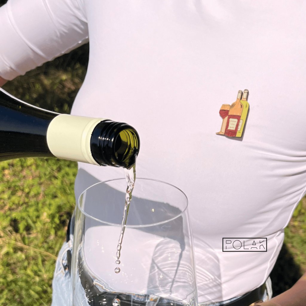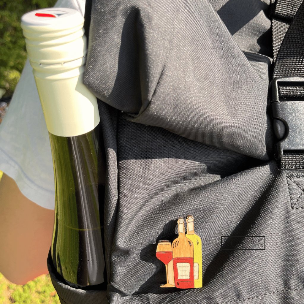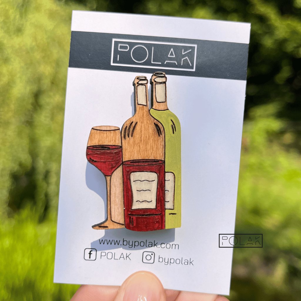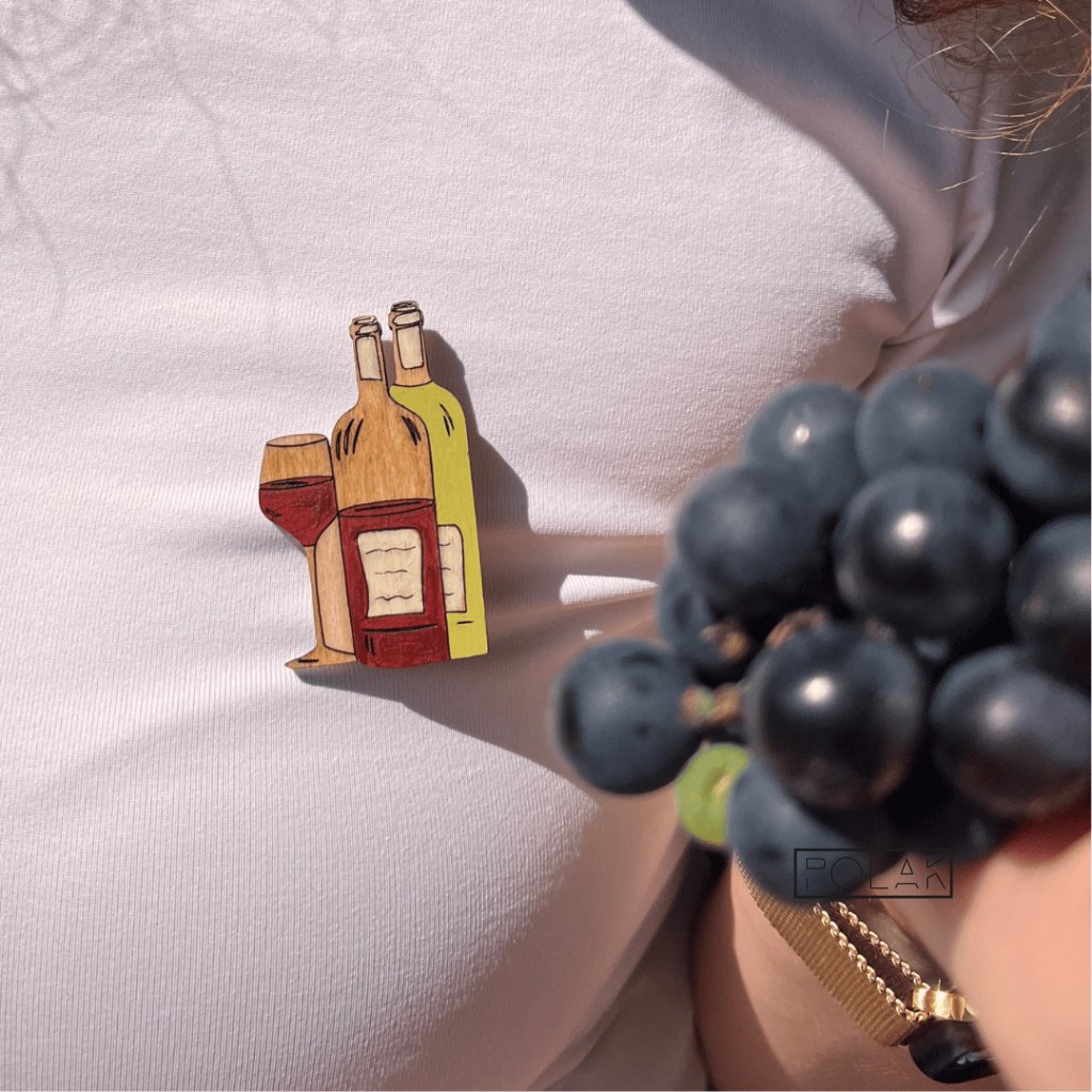 Přeneste se do sluncem zalitých vinic a vychutnejte si radost z dobrého vína. Tato dřevěná brož zachycuje esenci vinného požitku – sklenku červeného a dvě elegantní lahve, připravené k oslavě. Svou oblíbenou vášeň si teď můžete připnout na klopu a nosit ji s sebou, kamkoli půjdete.