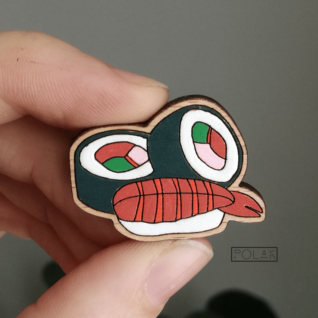 Dřevěná, ručně vyráběná brož Sushi ze srdce Křivoklátska, s duší na Valašsku, je ideální pro gurmány, milovníky asijské kuchyně nebo kohokoli, kdo rád vyčnívá z davu s originálním doplňkem.
