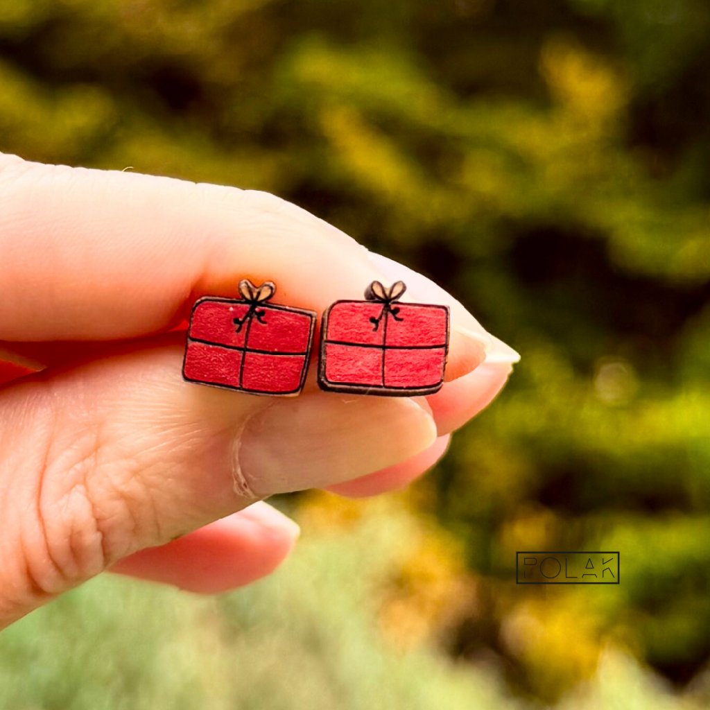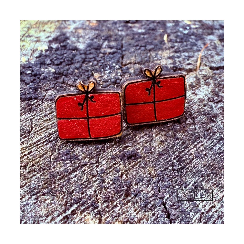 Dřevěné náušnice Dárečky červené - srdcem darované ruční výroba | originální dárek pro milovnice Vánoc