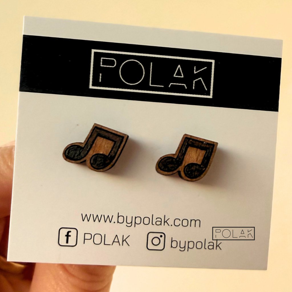 Dřevěné, ručně vyráběné náušnice Noty jsou ideálním doplňkem pro milovnice hudby a originálních šperků.