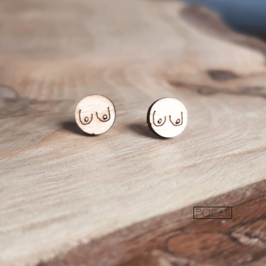 Dřevěné náušnice Prsa - odvážná ženskost ruční výroba | originální dárek pro odvážné ženy