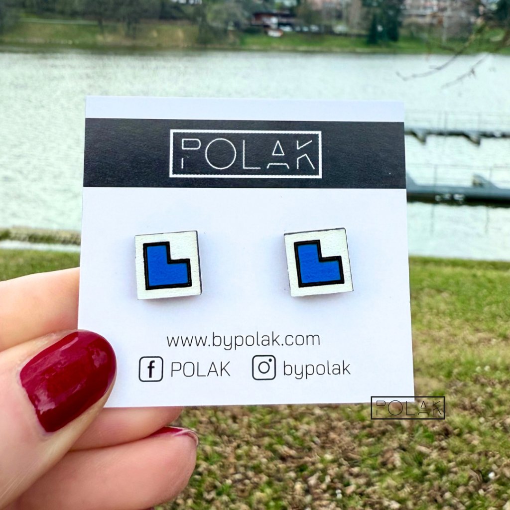 Dřevěné náušnice - Turistické značky modré - zřícenina hradu ruční výroba | originální dárek pro milovnice turistiky