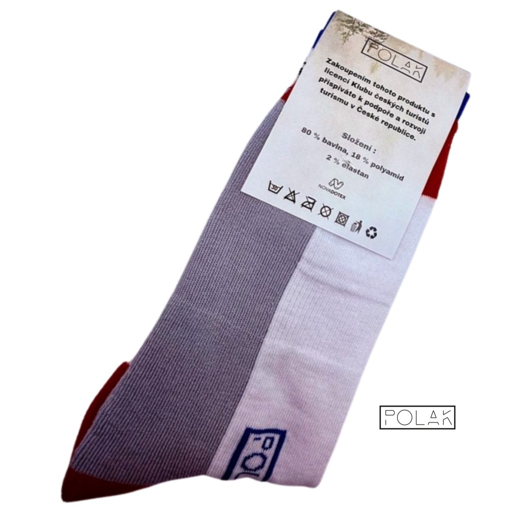 Tyto ponožky vznikly ve spolupráci s Klubem českých turistů a nesou oficiální značení, které znáte z tisíců kilometrů českých tras.