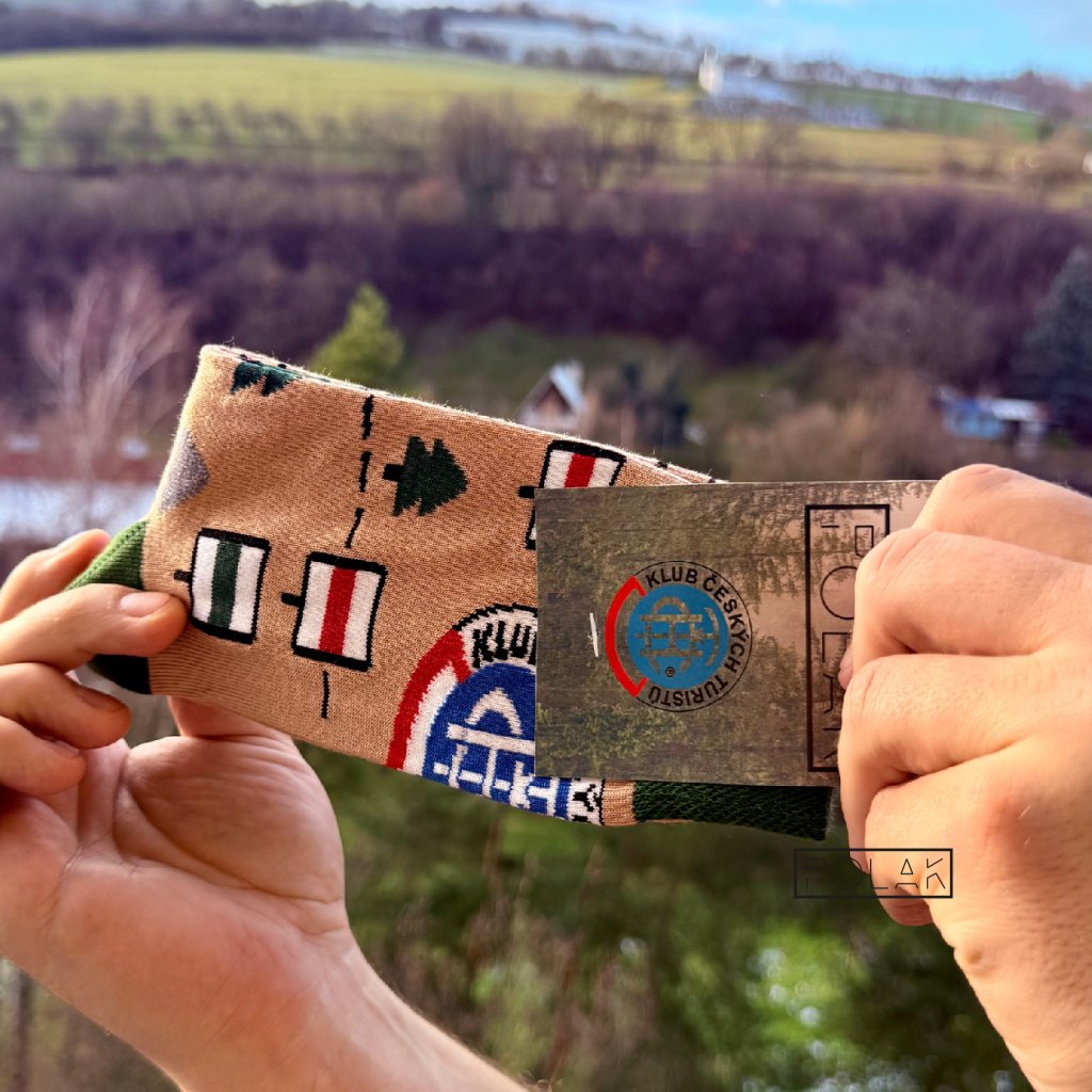 Tyto ponožky vznikly ve spolupráci s Klubem českých turistů a nesou oficiální značení, které znáte z tisíců kilometrů českých tras.