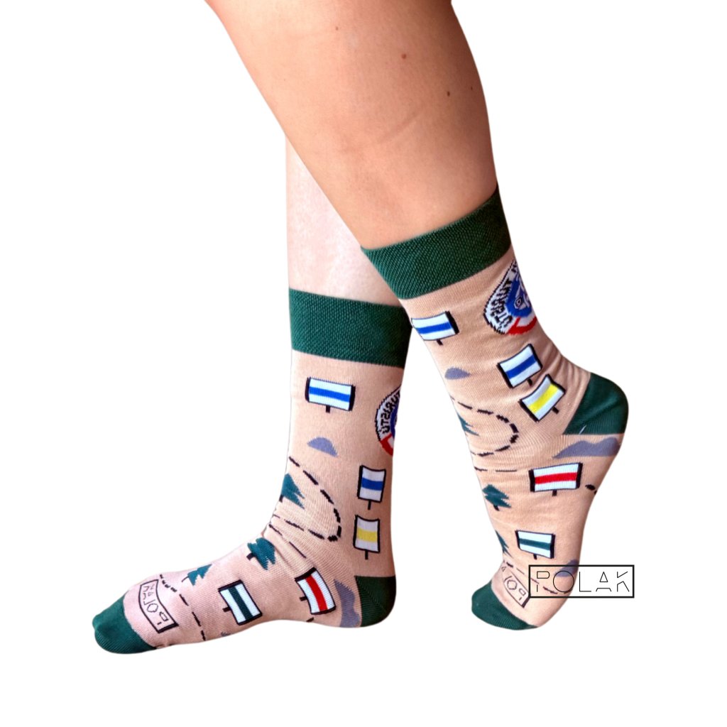 Bavlněné ponožky ideální pro milovníky turismu, přírody a barevných ponožek.